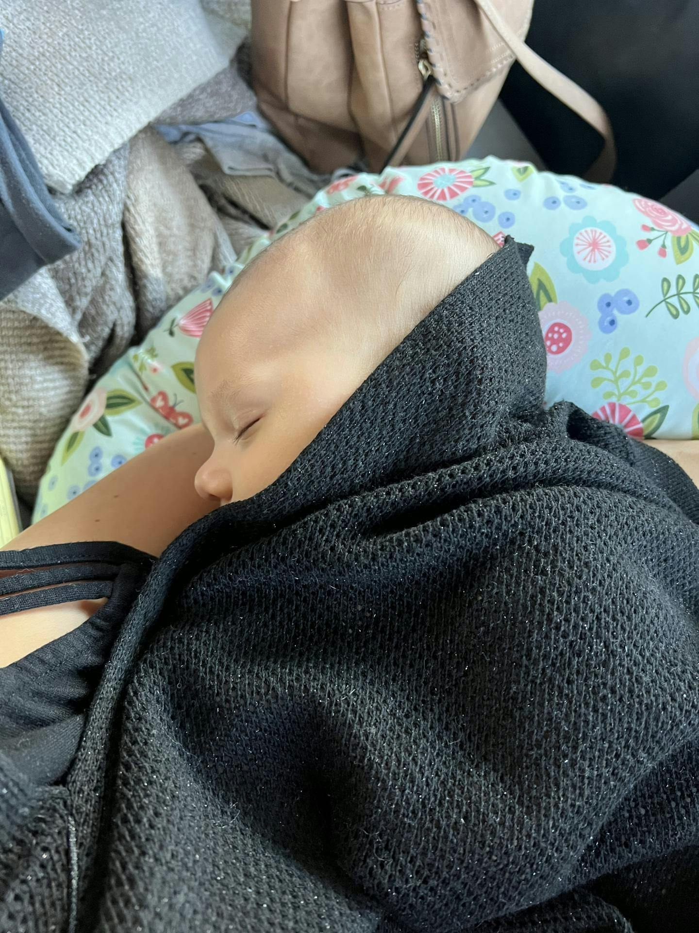 I am not embarrass to breastfeed in public, but when my in laws came to meet the baby from out of state I wanted to be a little bit more discreet in front of my father in law. So I got the AMMA cocoon and it has worked really good! I like that the neck’s opening is wide enough to see my baby but not as much so that it slides off. I wanted the honey one but it was out of stock so I got the black sparkle instead, the sparkles make it a little bit less soft, I’ll get the honey to have a back up!