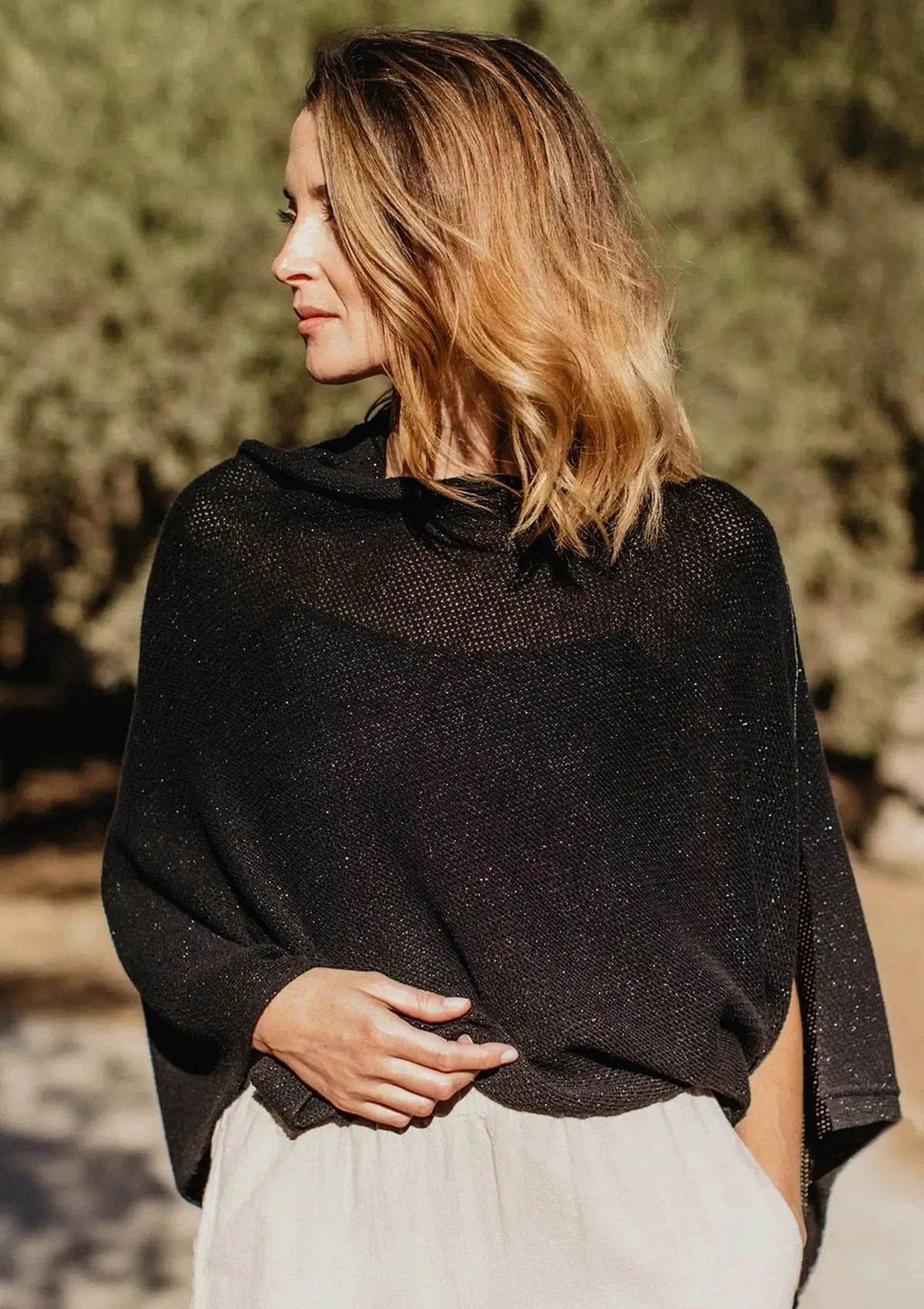 I love how this piece looks on and also how functional it is. Took a trip with my 6 month old son and we used this in the airplane and all over while sightseeing for him to sleep and to breastfeed. Only drawback is the sparkle one I chose is not as soft as the others. Wishing I had thought about that, I would have ordered the regular black.
