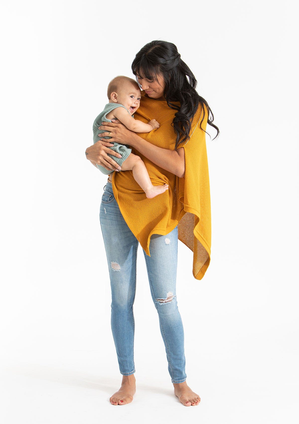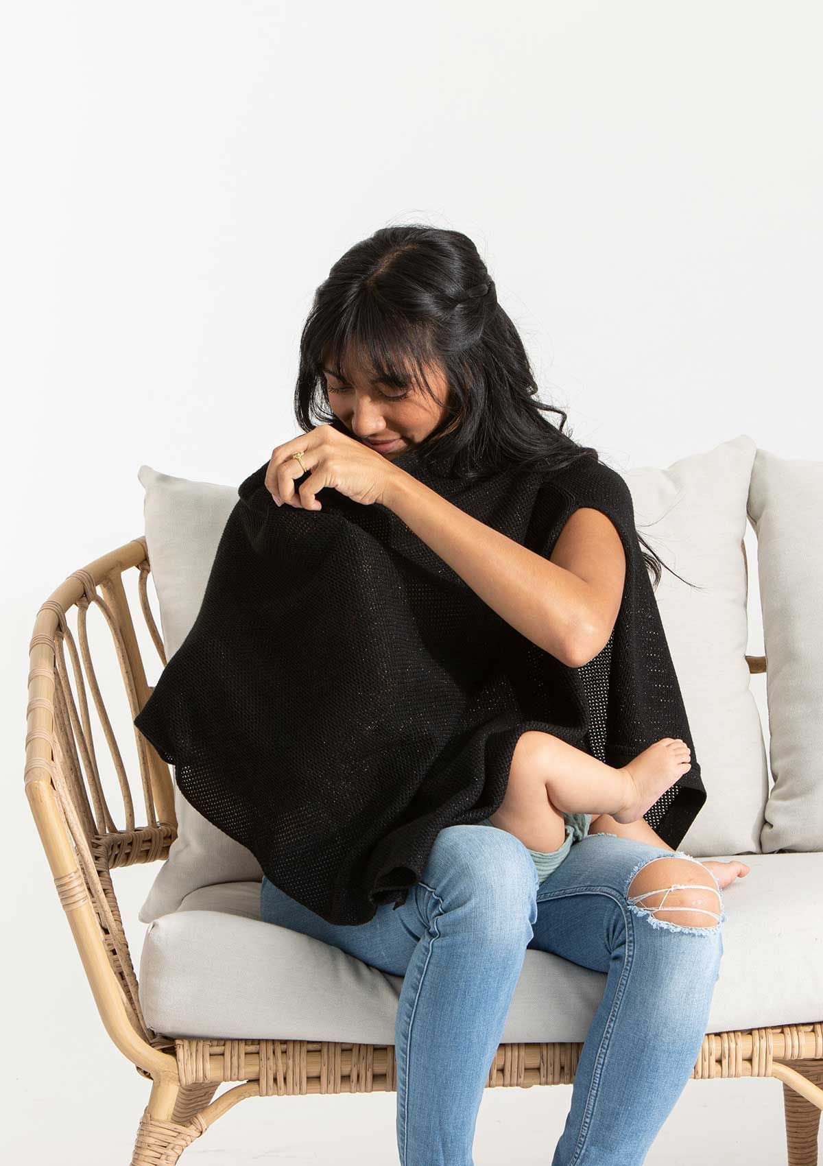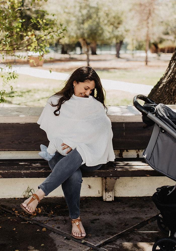 Our wrap has made it through THREE babies. Needless to say, we don’t leave home without it. It has multiple functions, not just a cover while I’m nursing. Often times we used it as a blanket on a cold airplane or lay it down in the park. Thanks for creating a breathable, yet cozy wrap!